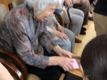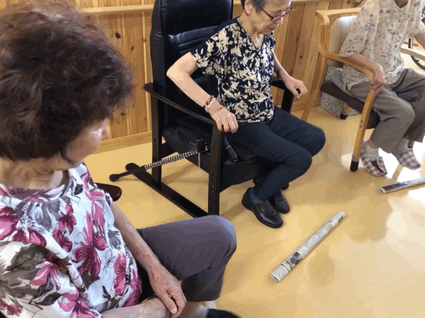 ※オモリを持って 歌いながら!楽しみながら!低負荷高反復でおこないます。歌いながらおこなうことで呼吸器訓練にもなり、且つ、楽しみながら効率効果的なリハビリがおこなえます。