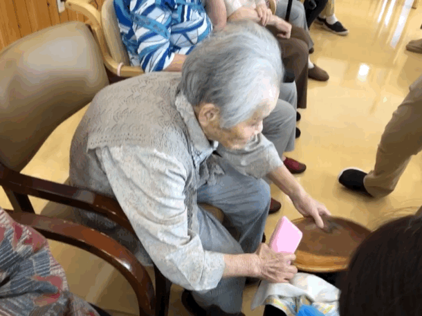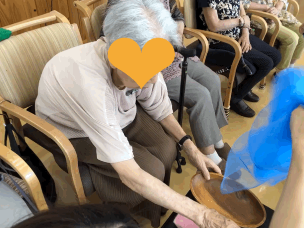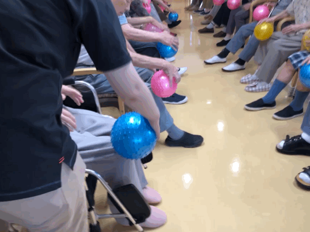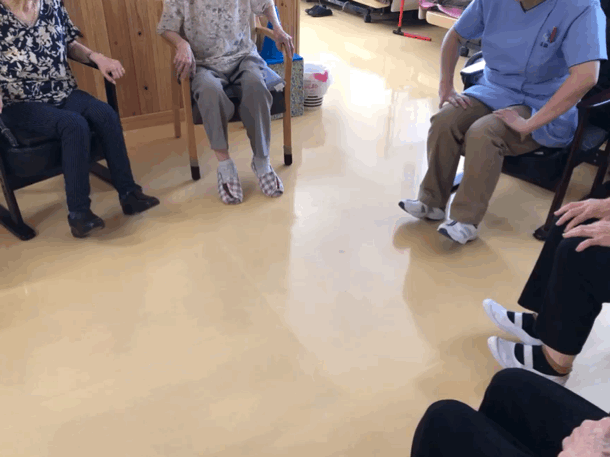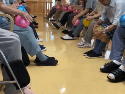 ※レクリエーション形式でおこなう「たのリハ」。楽しみながらゲーム感覚でおこなうことで、飽きることなくリハビリを終えることができます。普段のレクリエーションよりもプラスアルファの範囲で体や頭を使います。