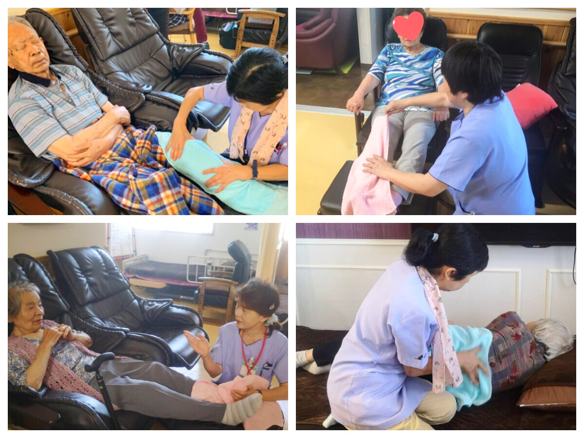※機能訓練前に硬直した筋肉をほぐす為、当センターではマッサージをおこなっております。機械では味わえない感触がとても大好評です。『やっぱ人の手だよね』とのお声が上がっております。