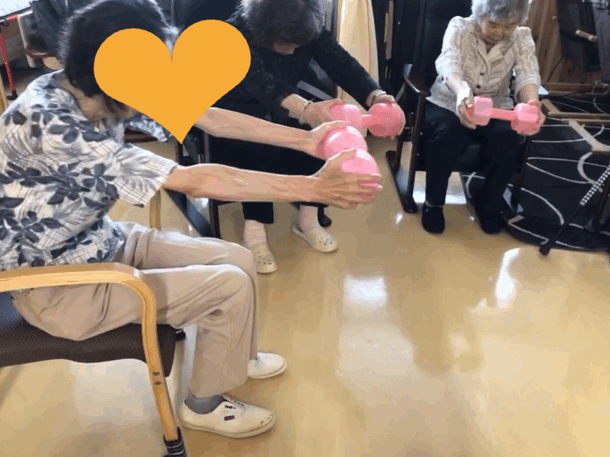 ※腹筋や上肢下肢の筋力が向上するとともにバランス力の向上や失禁予防の訓練を目的としております。低負荷高反復でおこなう持続的、且つ、疲労を残さない筋力アップ法で取り組んでおります。