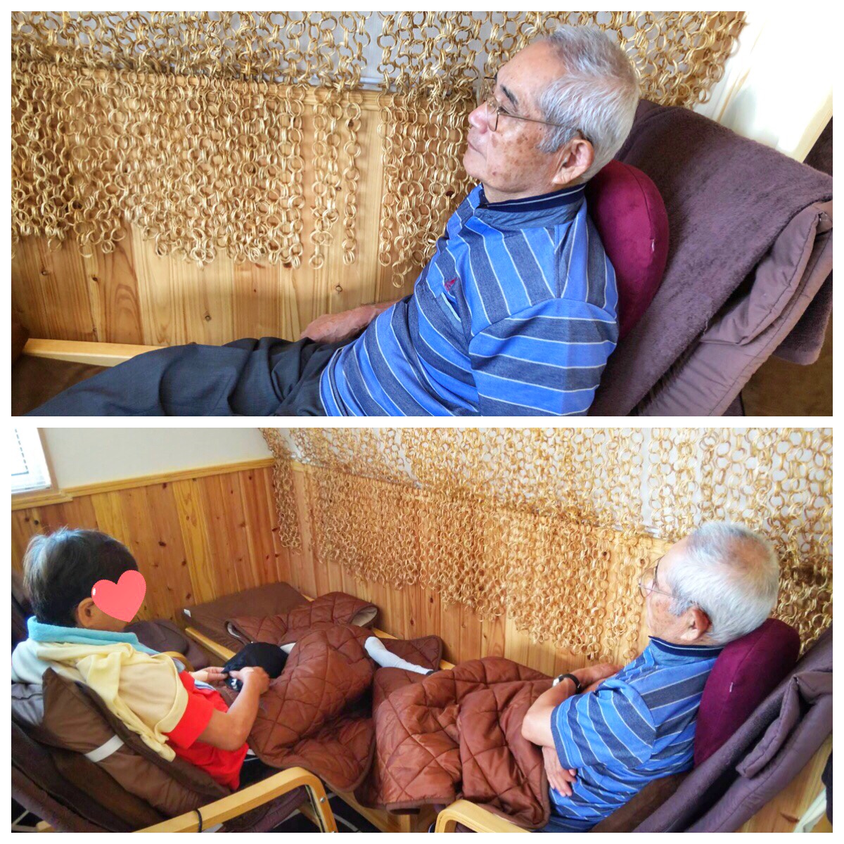 リラックスチェアに付いているマッサージ器にかかりながら