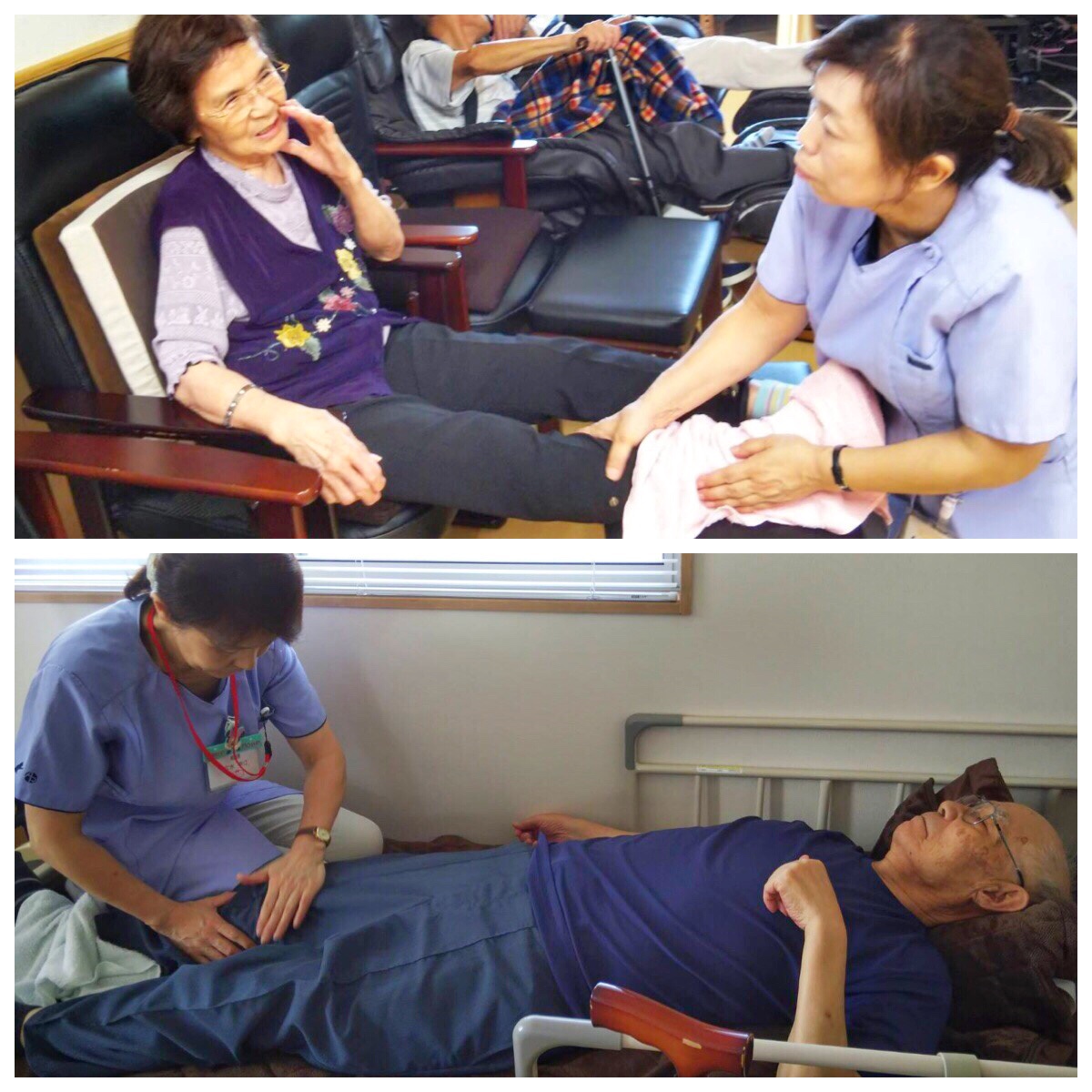 ※機能訓練前に硬直した筋肉をほぐす為、当センターではマッサージをおこなっております。機械では味わえない感触がとても大好評です。『やっぱ人の手だよね』とのお声が上がっております。