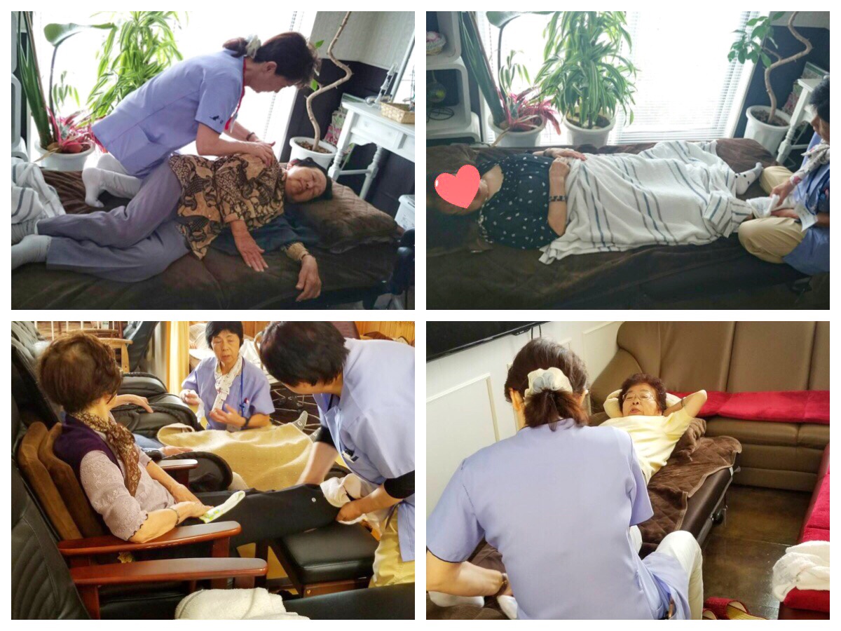 ※機能訓練前に硬直した筋肉をほぐす為、当センターではマッサージをおこなっております。機械では味わえない感触がとても大好評です。『やっぱ人の手だよね』とのお声が上がっております。