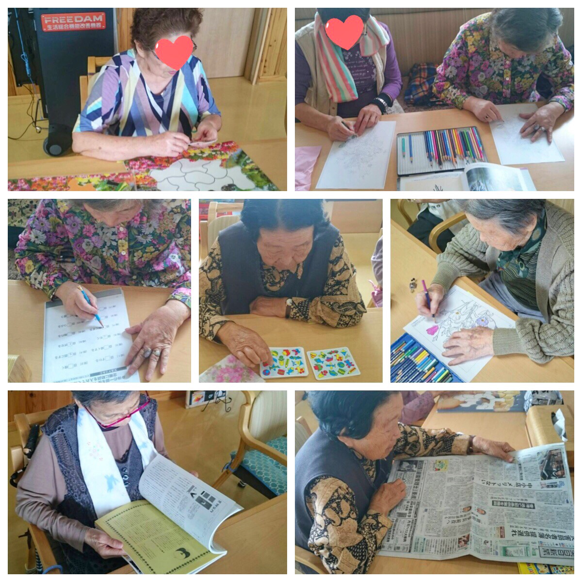 ※個人のニーズに合わせた選択制レクリエーション。過去または現在の趣味、仕事などを活かした内容や、自分の好きな事をする時間。お客様同士のコミュニケーションやスタッフとお客様が「ふれあう」とても大切な時間です。
