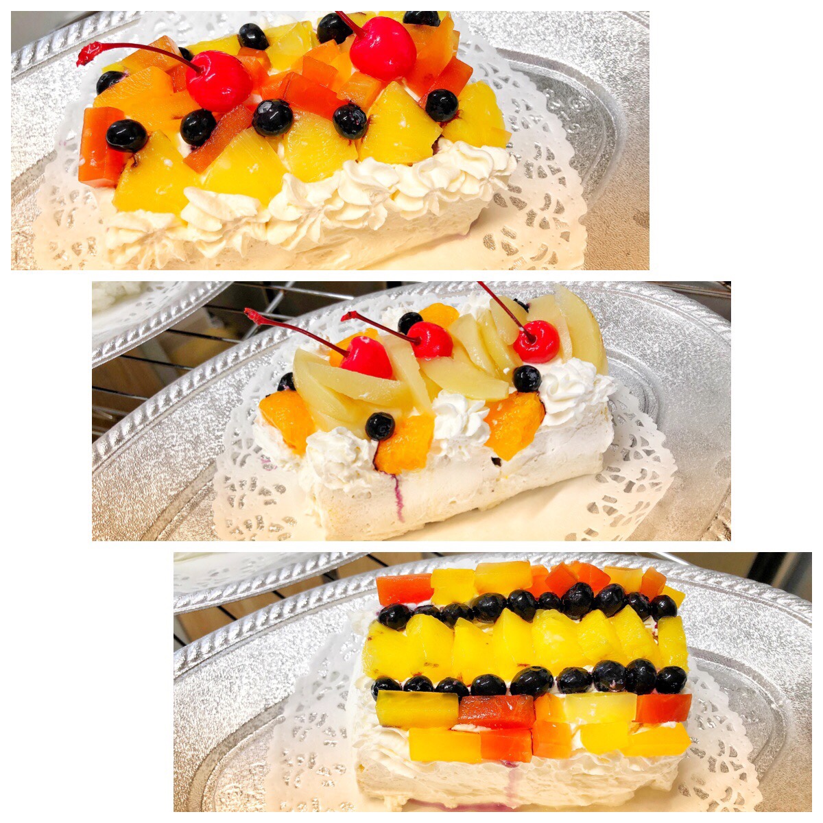 フルーツ盛りの生クリームケーキ