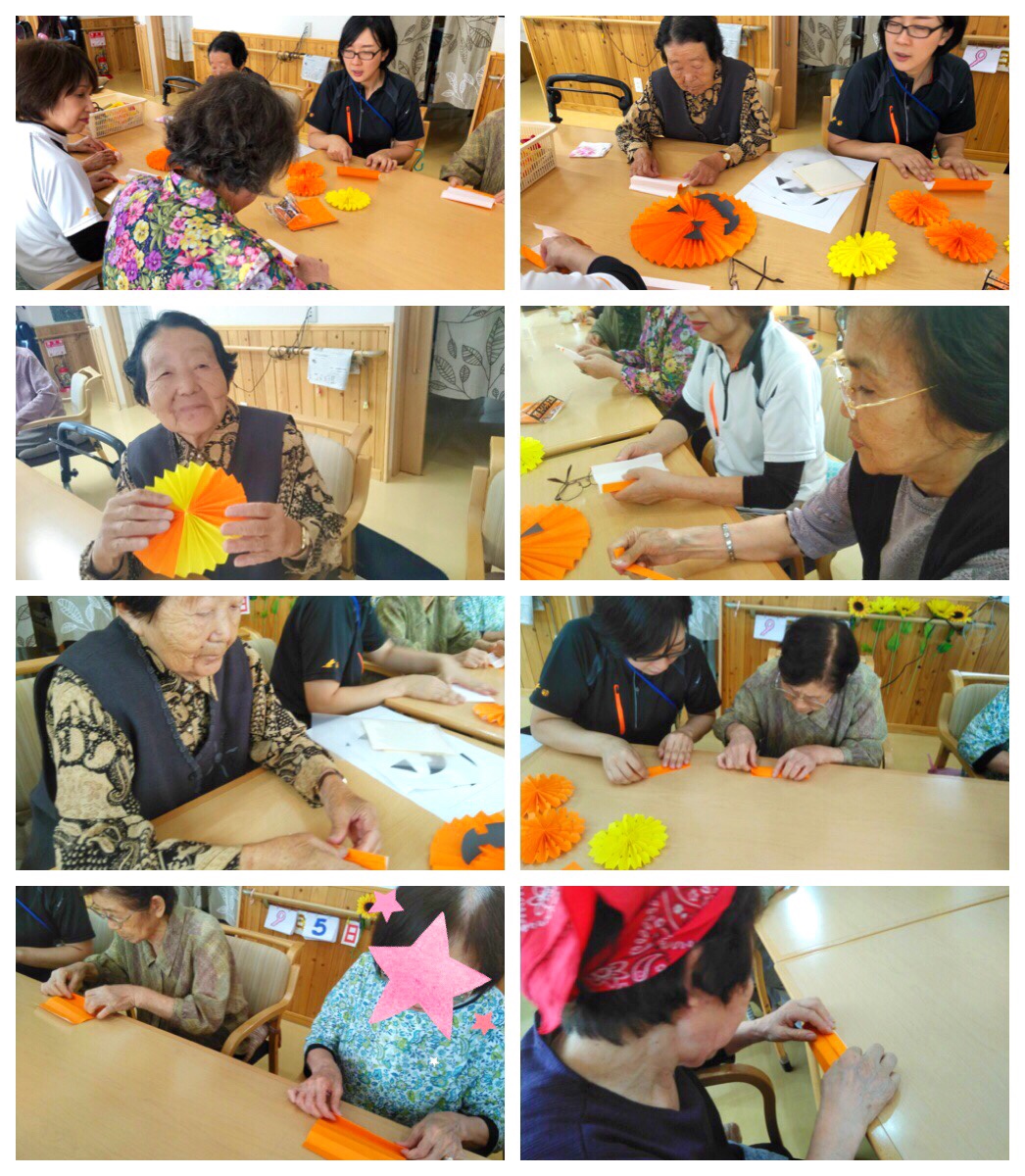物づくりレク ハロウィンペーパーファンの壁飾り