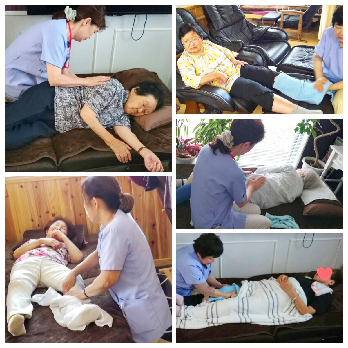※機能訓練前に硬直した筋肉をほぐす為、当センターではマッサージをおこなっております。機械では味わえない感触がとても大好評です。『やっぱ人の手だよね』とのお声が上がっております。
