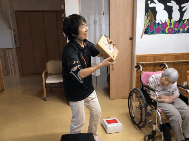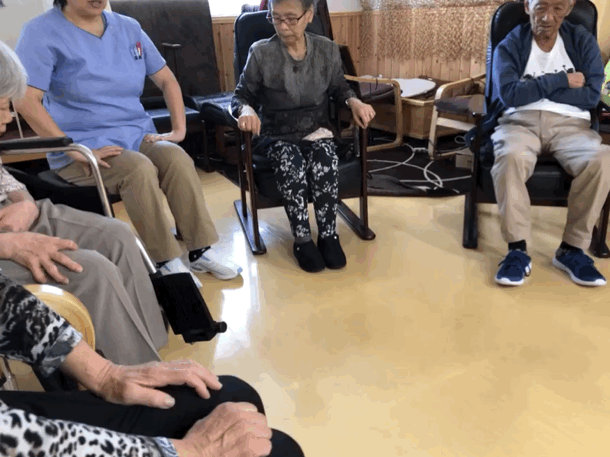 ※レクリエーション形式でおこなう「たのリハ」。楽しみながらゲーム感覚でおこなうことで、飽きることなくリハビリを終えることができます。普段のレクリエーションよりもプラスアルファの範囲で体や頭を使います。