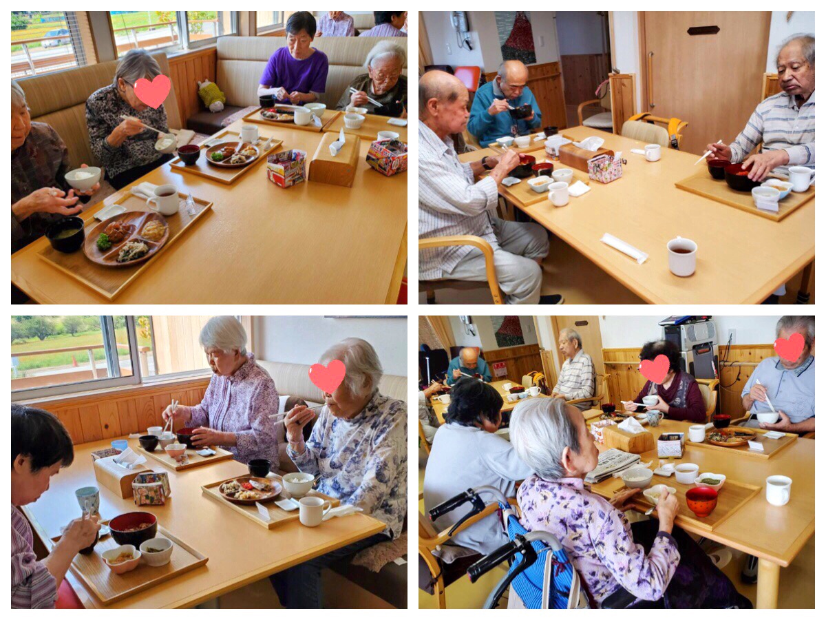 口腔体操や軽体操をおこない、ご飯にしましょう!