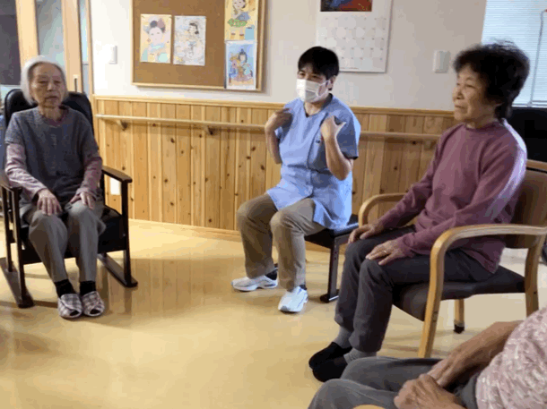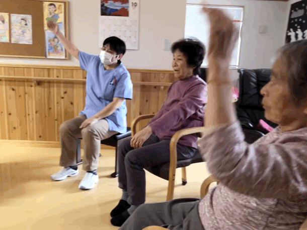 口腔体操や軽体操をおこない、ご飯にしましょう!
