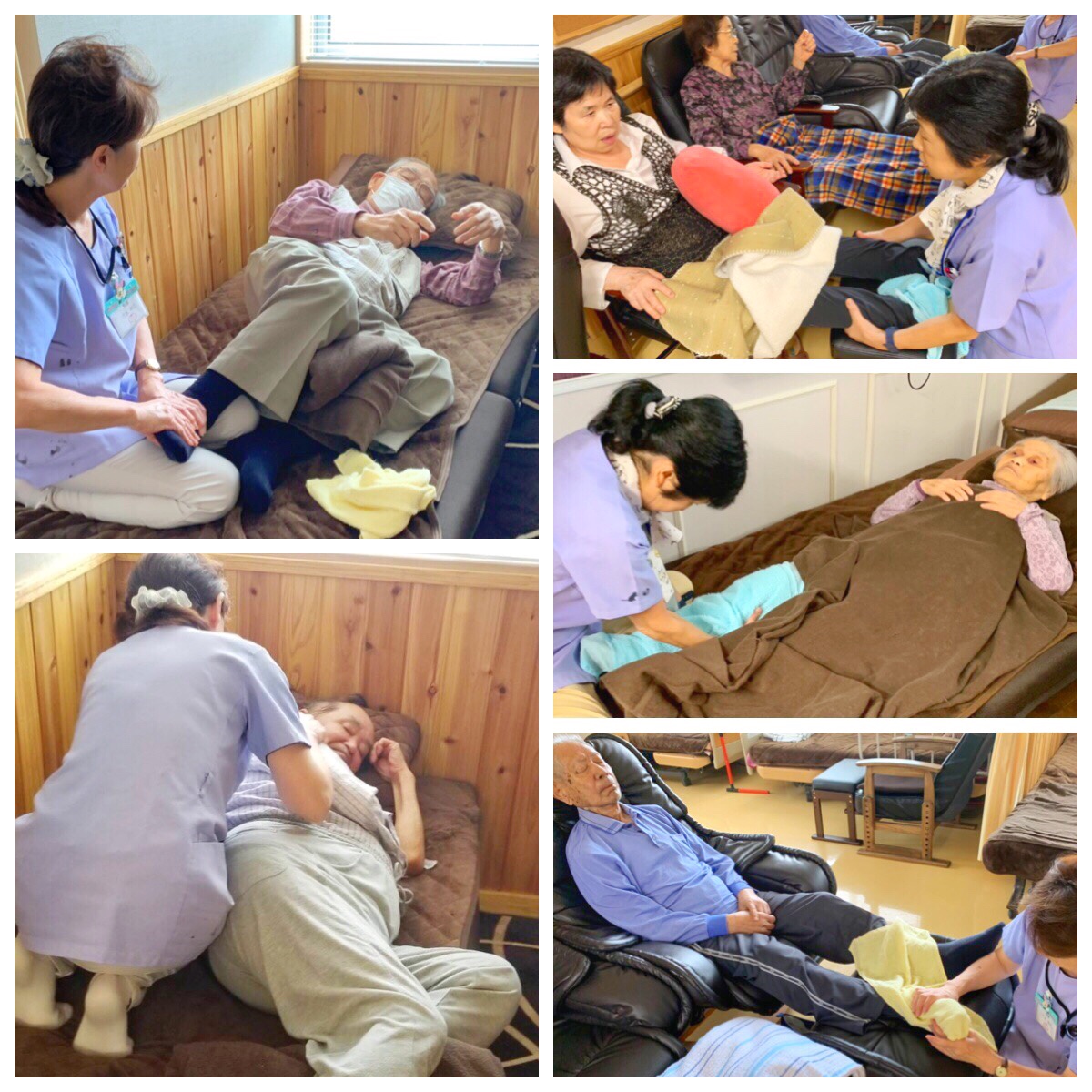 ※機能訓練前に硬直した筋肉をほぐす為、当センターではマッサージをおこなっております。機械では味わえない感触がとても大好評です。『やっぱ人の手だよね』とのお声が上がっております。