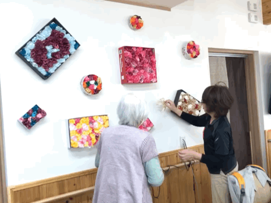 ※個人のニーズに合わせた選択制レクリエーション。過去または現在の趣味、仕事などを活かした内容や、自分の好きな事をする時間。お客様同士のコミュニケーションやスタッフとお客様が「ふれあう」とても大切な時間です。
