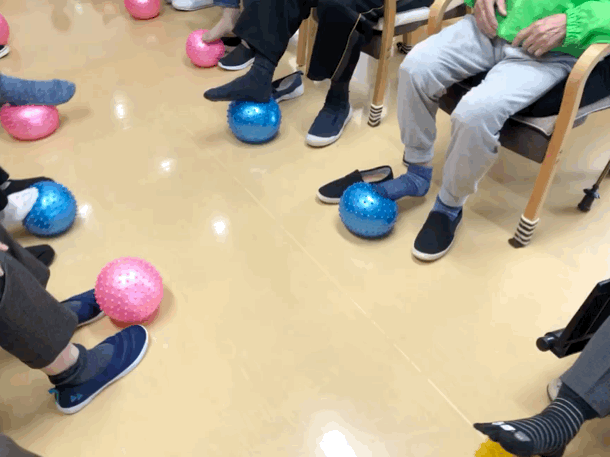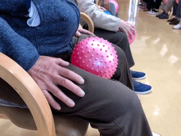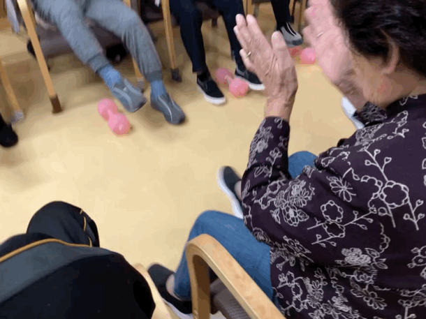 ※オモリを持って 歌いながら!楽しみながら!低負荷高反復でおこないます。歌いながらおこなうことで呼吸器訓練にもなり、且つ、楽しみながら効率効果的なリハビリがおこなえます。