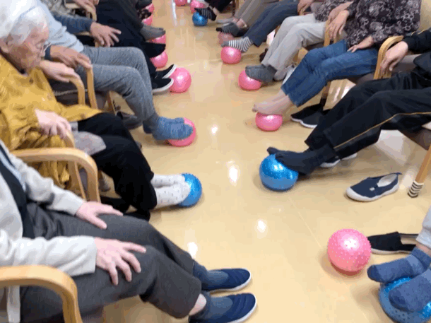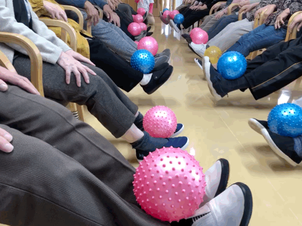 ※腹筋や上肢下肢の筋力が向上するとともにバランス力の向上や失禁予防の訓練を目的としております。低負荷高反復でおこなう持続的、且つ、疲労を残さない筋力アップ法で取り組んでおります。