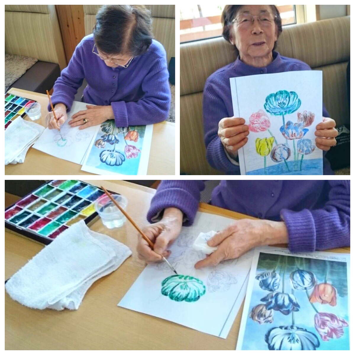 ※個人のニーズに合わせた選択制レクリエーション。過去または現在の趣味、仕事などを活かした内容や、自分の好きな事をする時間。お客様同士のコミュニケーションやスタッフとお客様が「ふれあう」とても大切な時間です。
