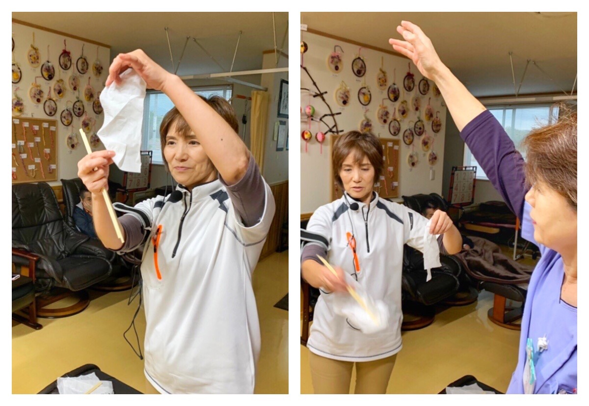 ティッシュキャッチゲームをおこないましたので