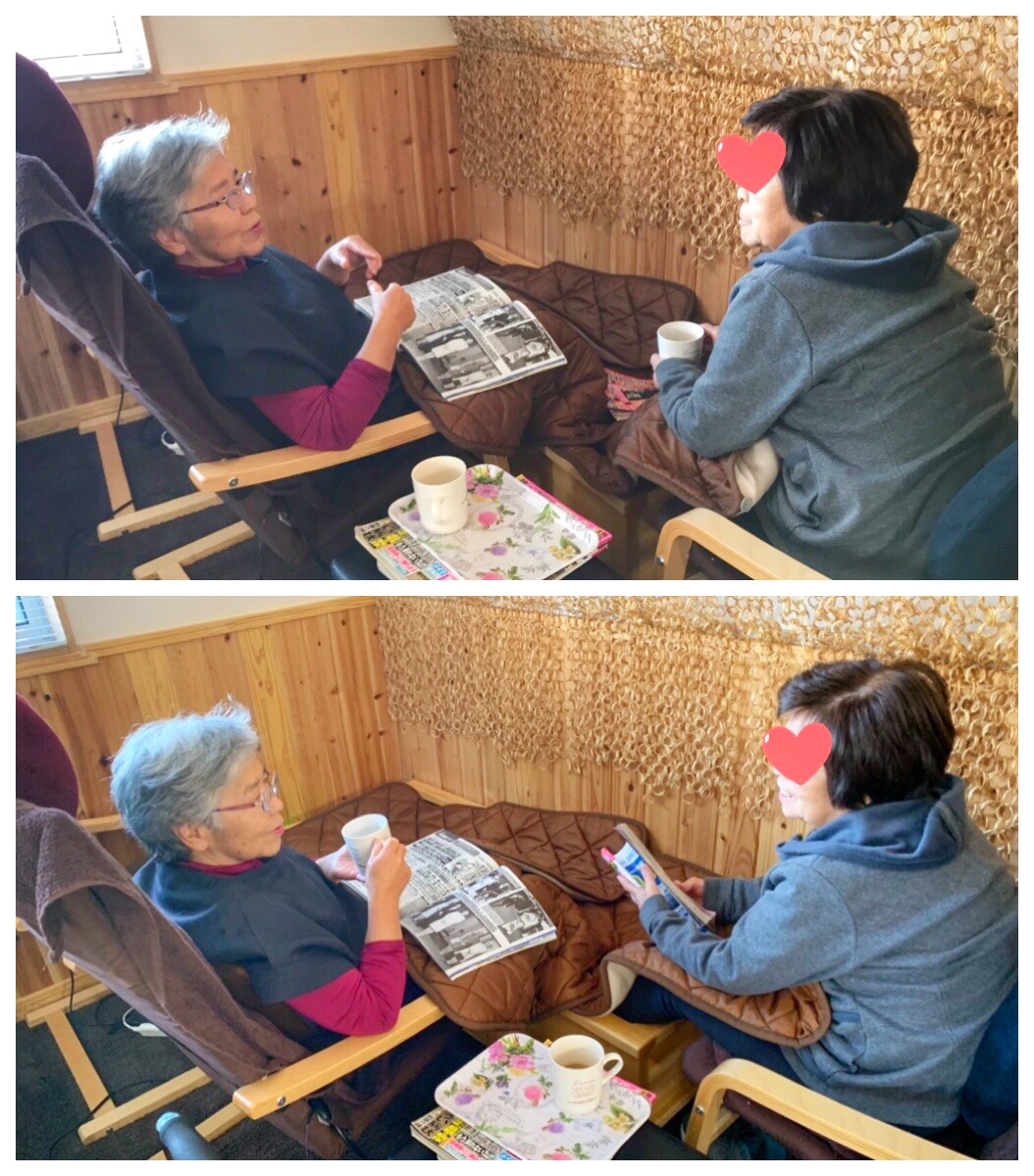 ※個人のニーズに合わせた選択制レクリエーション。過去または現在の趣味、仕事などを活かした内容や、自分の好きな事をする時間。お客様同士のコミュニケーションやスタッフとお客様が「ふれあう」とても大切な時間です。