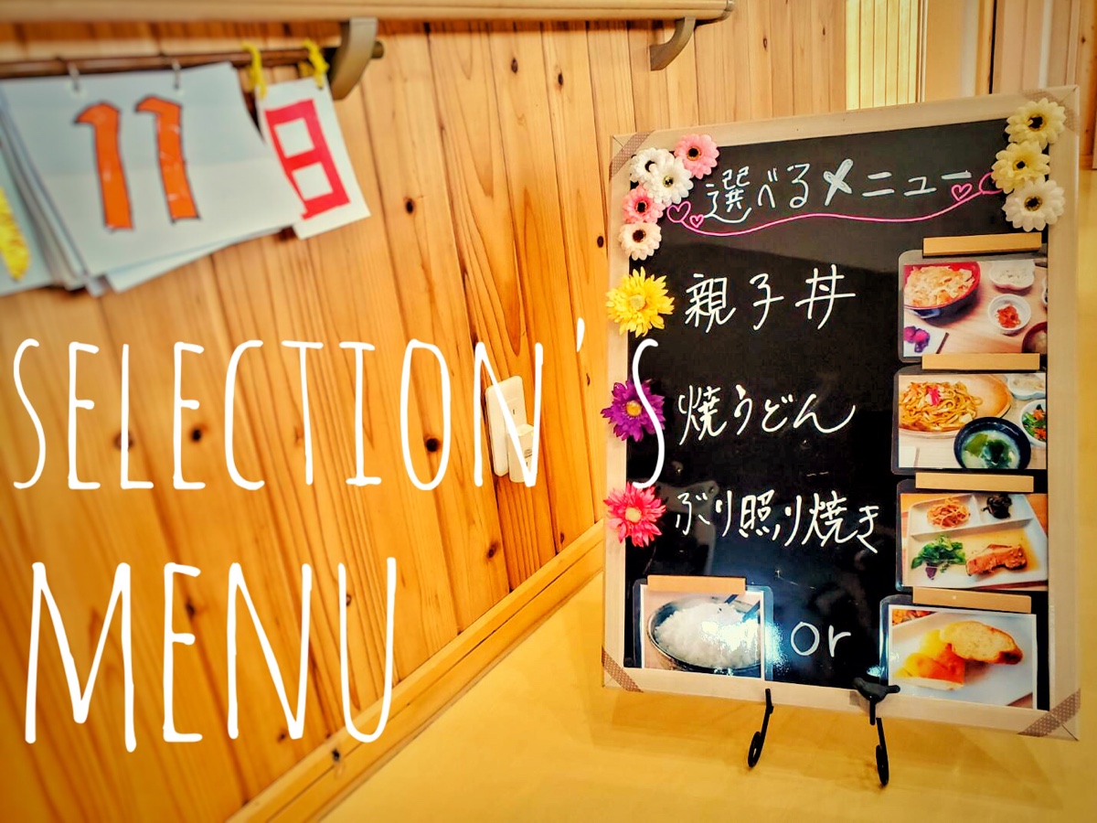 ※飲食店に来たような感覚や、「メニューを選ぶ楽しさ」を大事に思い、取組んでおります。(主食もライスかパンでお選びいただけます)※当センターでは特別食(ペースト、やわらか、きざみ)も対応しております。