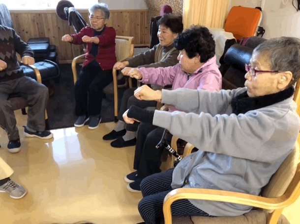 口腔体操や軽体操をおこない、ご飯にしましょう!