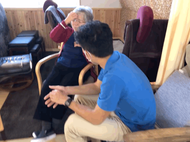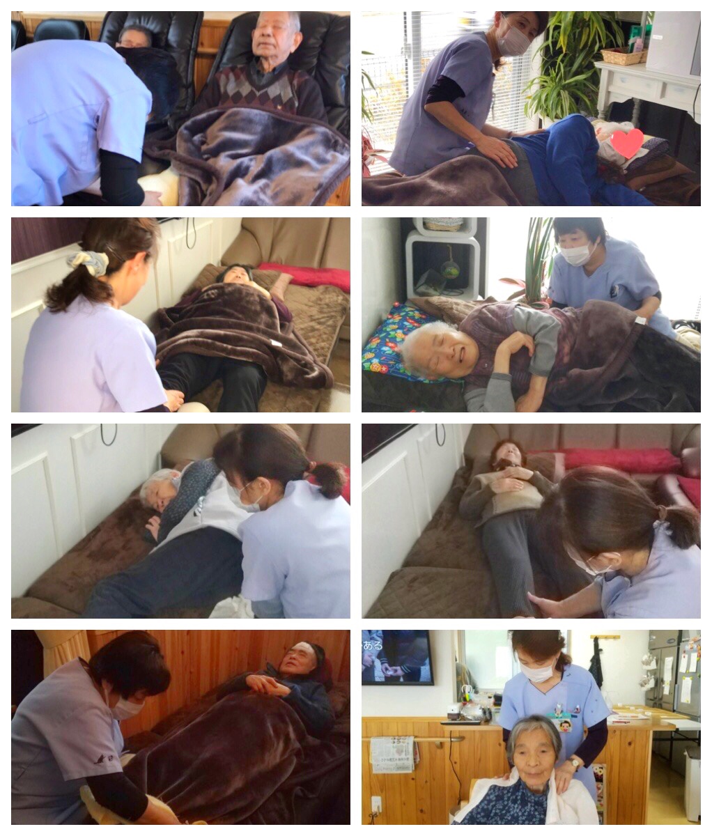 ※機能訓練前に硬直した筋肉をほぐす為、当センターではマッサージをおこなっております。機械では味わえない感触がとても大好評です。『やっぱ人の手だよね』とのお声が上がっております。