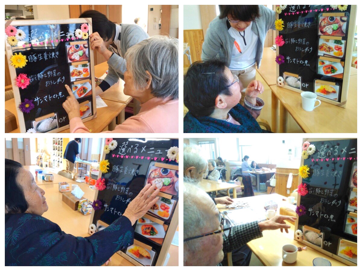 ※飲食店に来たような感覚や、「メニューを選ぶ楽しさ」を大事に思い、取組んでおります。(主食もライスかパンでお選びいただけます)※当センターでは特別食(ペースト、やわらか、きざみ)も対応しております。