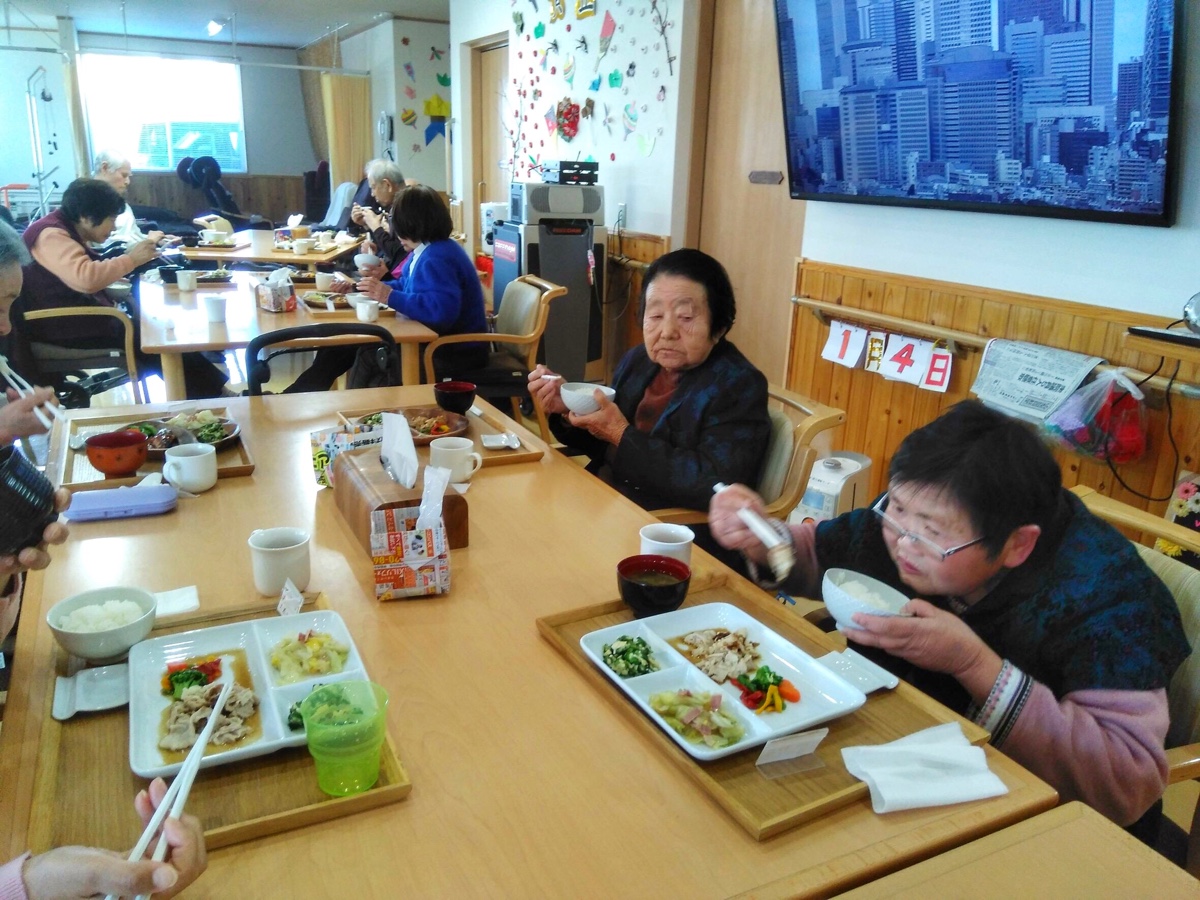 口腔体操や軽体操をおこない、ご飯にしましょう!