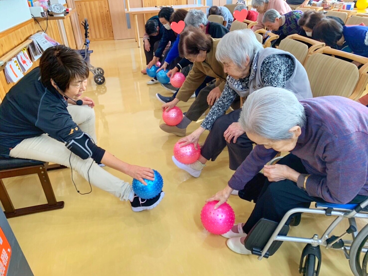 ※腹筋や上肢下肢の筋力が向上するとともにバランス力の向上や失禁予防の訓練を目的としております。低負荷高反復でおこなう持続的、且つ、疲労を残さない筋力アップ法で取り組んでおります。