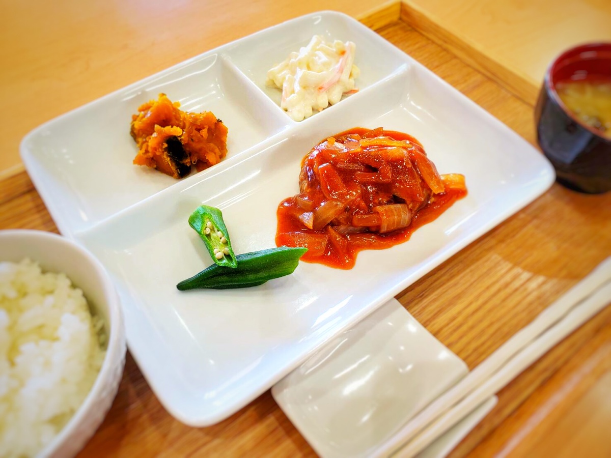 ※飲食店に来たような感覚や、「メニューを選ぶ楽しさ」を大事に思い、取組んでおります。(主食もライスかパンでお選びいただけます)※当センターでは特別食(ペースト、やわらか、きざみ)も対応しております。