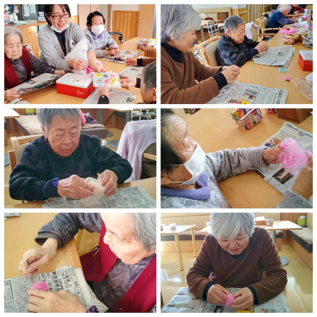 ※個人のニーズに合わせた選択制レクリエーション。過去または現在の趣味、仕事などを活かした内容や、自分の好きな事をする時間。お客様同士のコミュニケーションやスタッフとお客様が「ふれあう」とても大切な時間です。