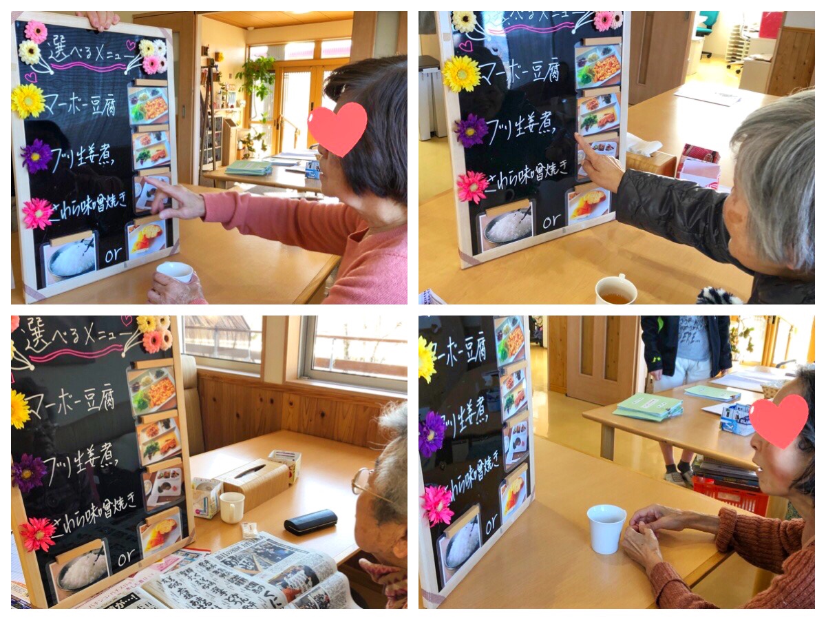 ※飲食店に来たような感覚や、「メニューを選ぶ楽しさ」を大事に思い、取組んでおります。(主食もライスかパンでお選びいただけます)※当センターでは特別食(ペースト、やわらか、きざみ)も対応しております。