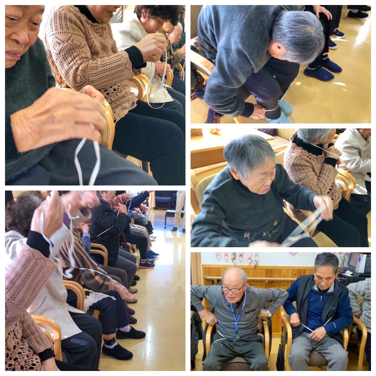 ゴム紐を使う生活訓練です。