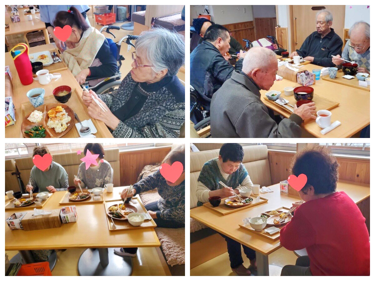 口腔体操や軽体操をおこない、ご飯にしましょう!