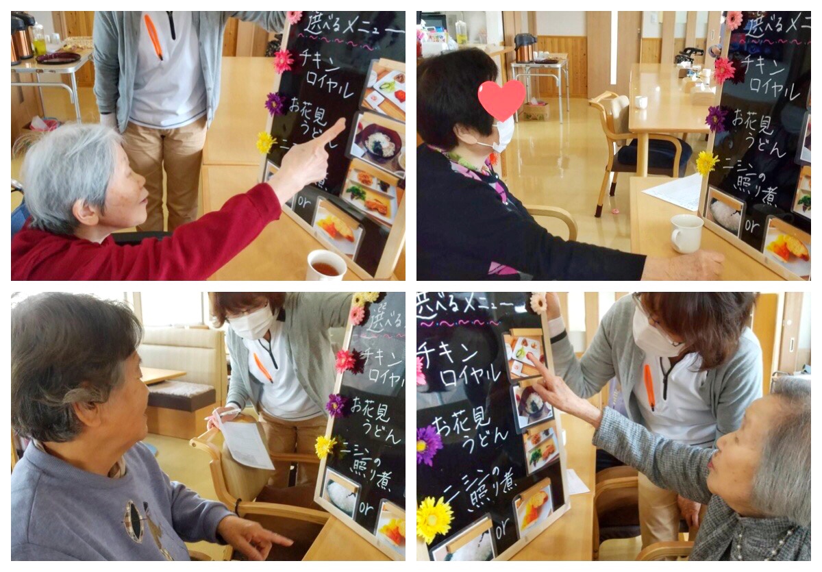 ※飲食店に来たような感覚や、「メニューを選ぶ楽しさ」を大事に思い、取組んでおります。(主食もライスかパンでお選びいただけます)※当センターでは特別食(ペースト、やわらか、きざみ)も対応しております。