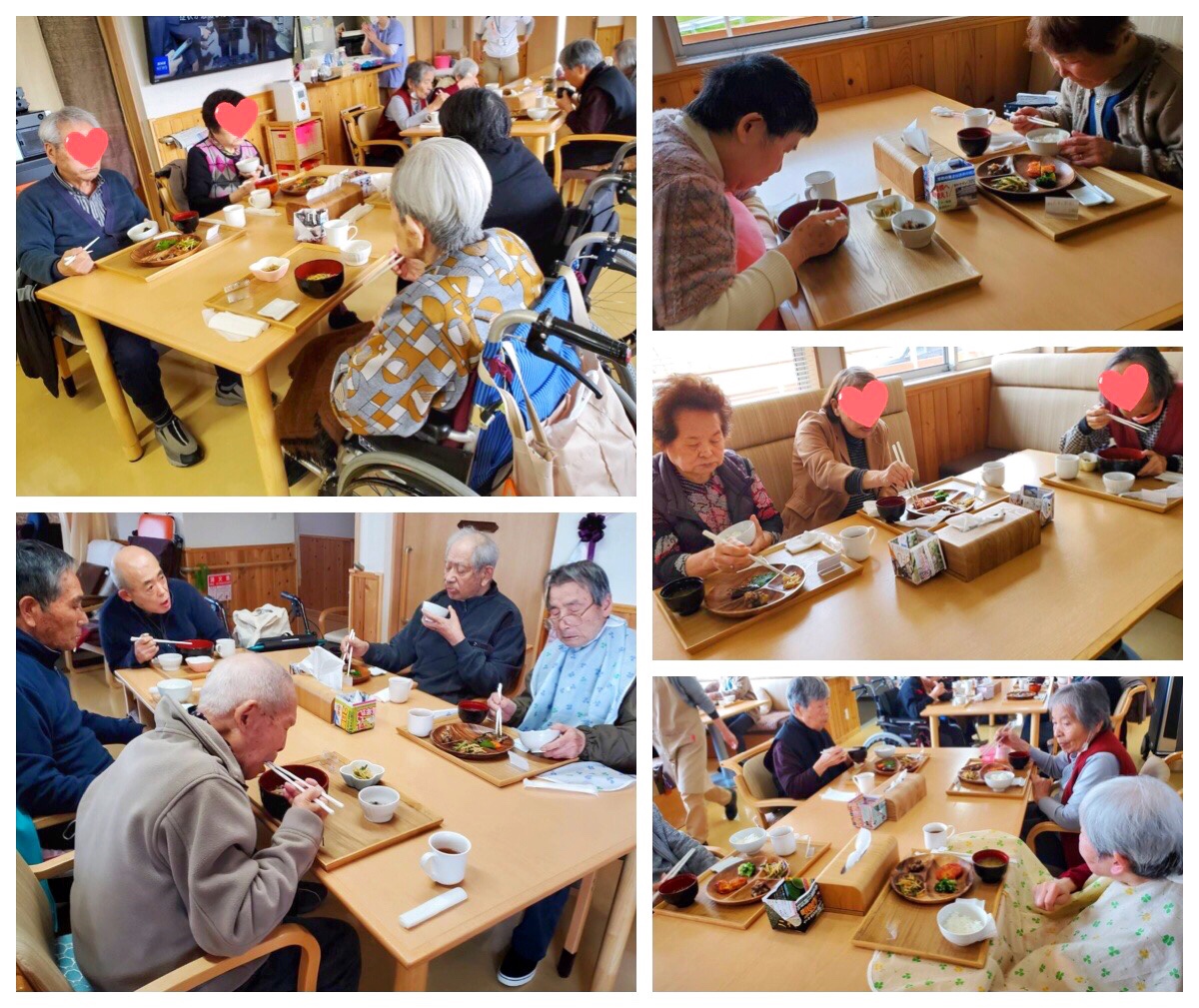 口腔体操や軽体操をおこない、ご飯にしましょう!