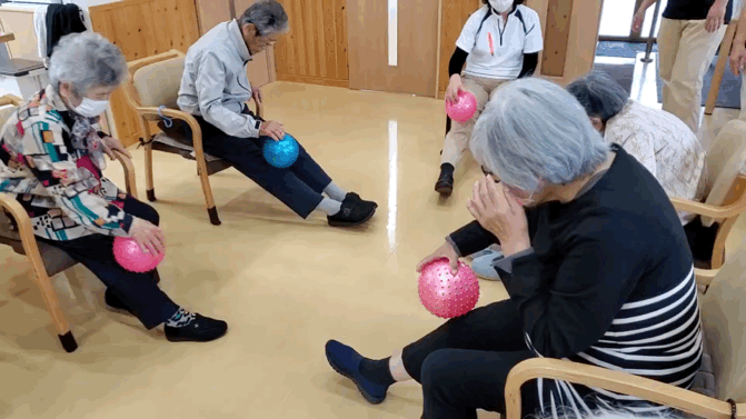 ※腹筋や上肢下肢の筋力が向上するとともにバランス力の向上や失禁予防の訓練を目的としております。低負荷高反復でおこなう持続的、且つ、疲労を残さない筋力アップ法で取り組んでおります。