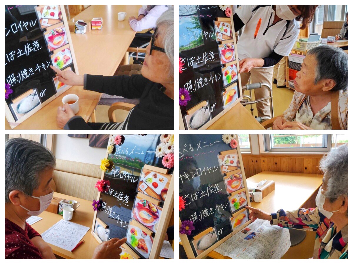 ※飲食店に来たような感覚や、「メニューを選ぶ楽しさ」を大事に思い、取組んでおります。(主食もライスかパンでお選びいただけます)※当センターでは特別食(ペースト、やわらか、きざみ)も対応しております。