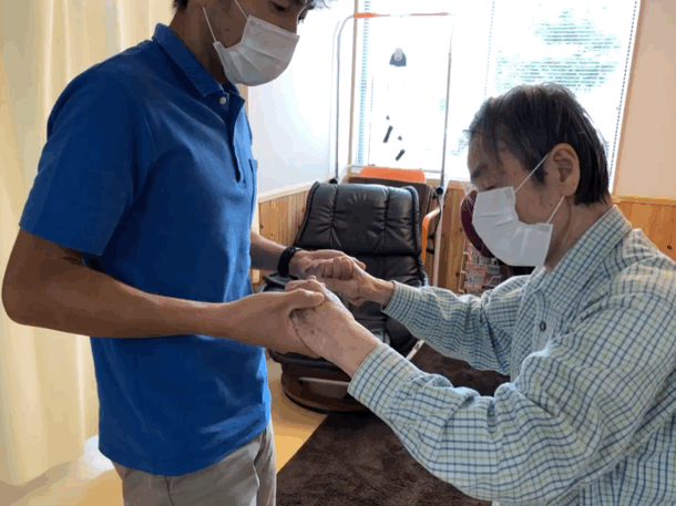 ※機能訓練前に硬直した筋肉をほぐす為、当センターではマッサージをおこなっております。機械では味わえない感触がとても大好評です。『やっぱ人の手だよね』とのお声が上がっております。