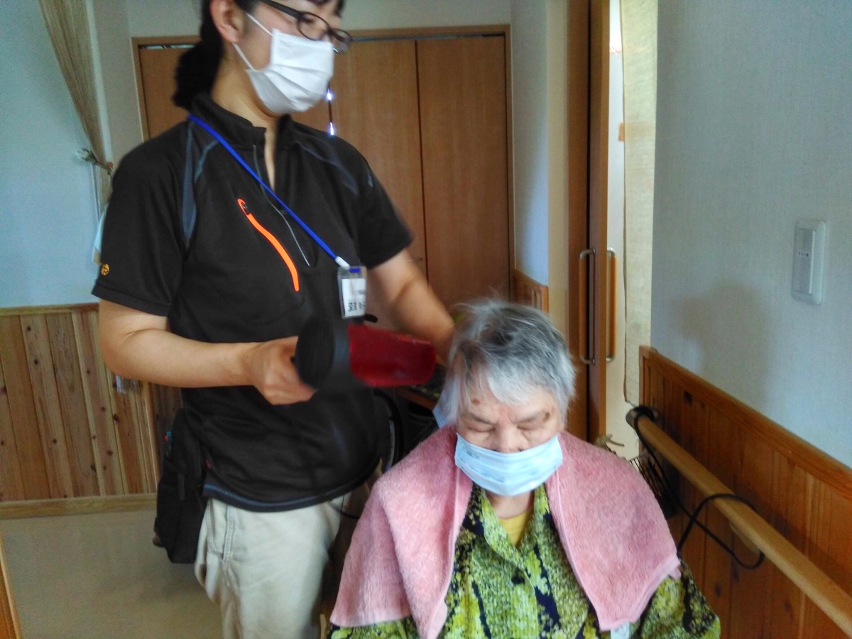 ※機能訓練前に硬直した筋肉をほぐす為、当センターではマッサージをおこなっております。機械では味わえない感触がとても大好評です。『やっぱ人の手だよね』とのお声が上がっております。