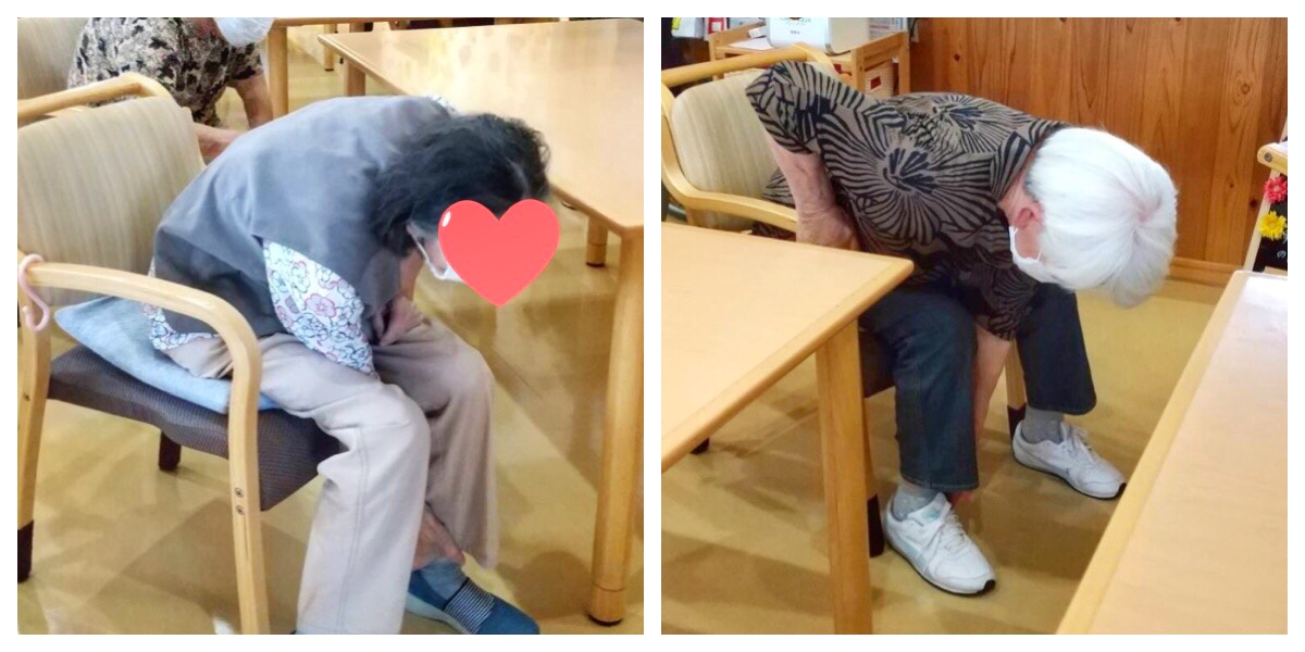 ※ゴム紐を使い、親指と人差し指だけで衣類着脱に必要なボタンを留める動作や、ゴム紐を上から下、下から上とくぐり着脱に必要な動作をおこないます。