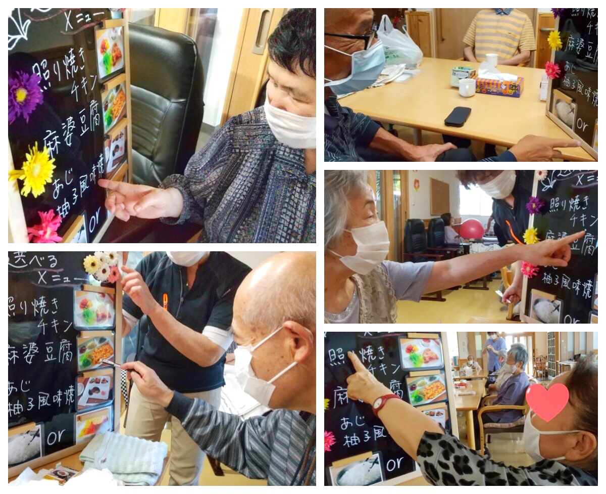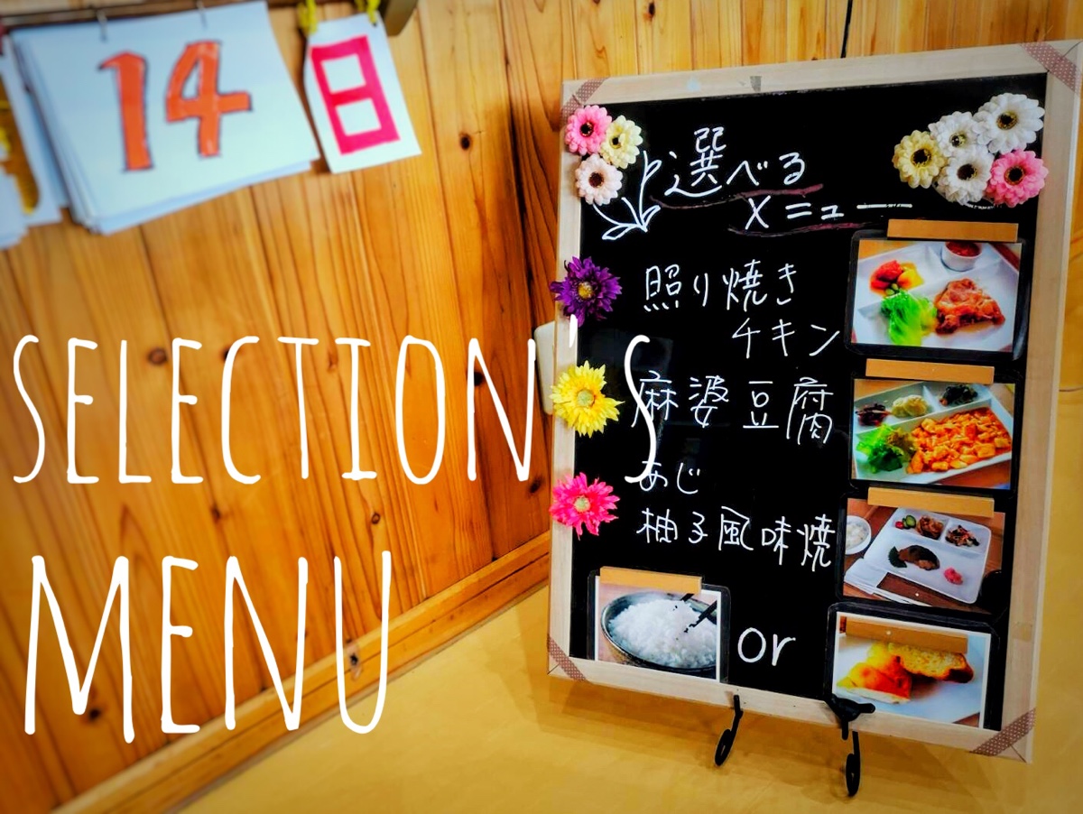 ※飲食店に来たような感覚や、「メニューを選ぶ楽しさ」を大事に思い、取組んでおります。(主食もライスかパンでお選びいただけます)※当センターでは特別食(ペースト、やわらか、きざみ)も対応しております。