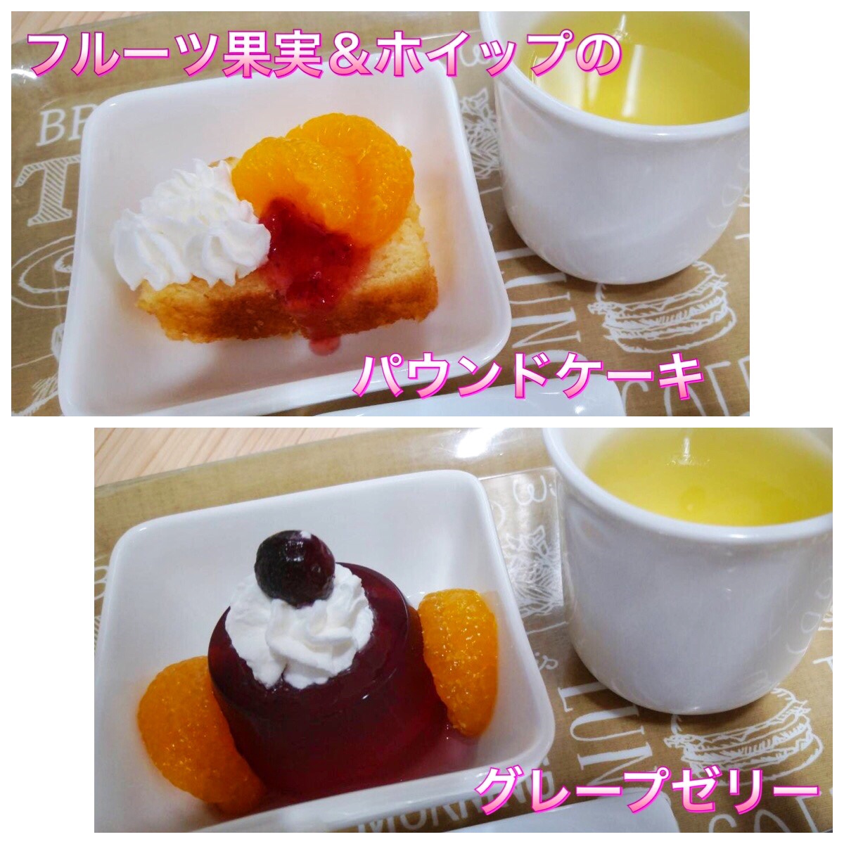 ※四季折々のおやつを提供したり、時にはお客様のリクエストにお応えしたり、喫茶店のような雰囲気を出したりと数種類の中からお選びいただく提供をおこなっております。