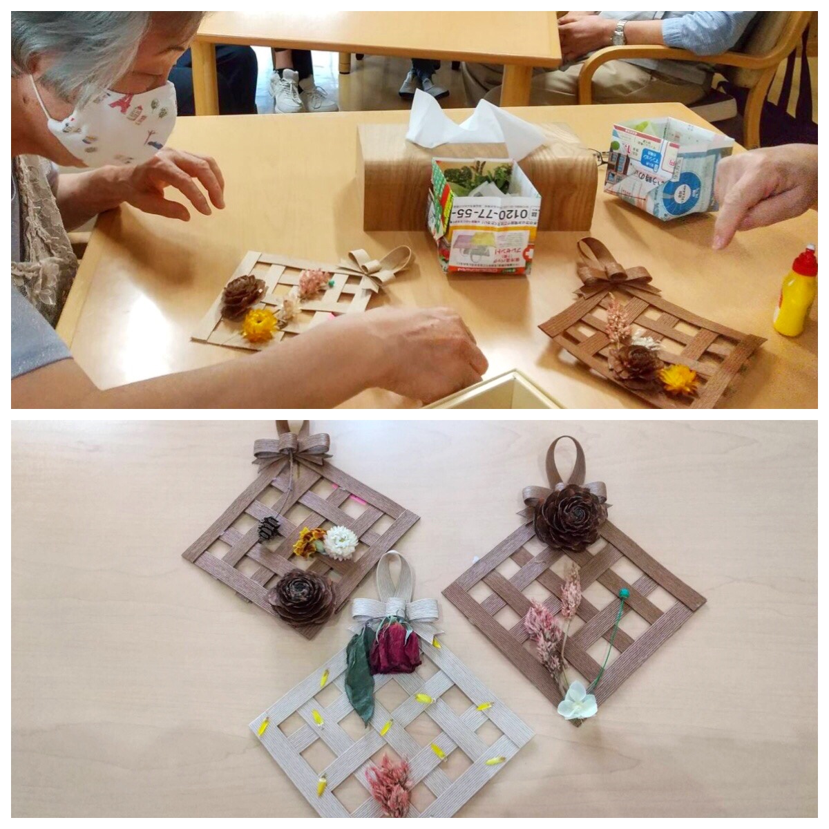 クラフトバンド&ドライフラワーの壁掛け飾り