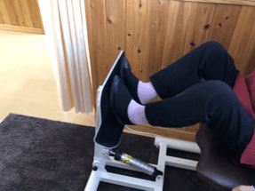岩盤足浴器で足を温め、
