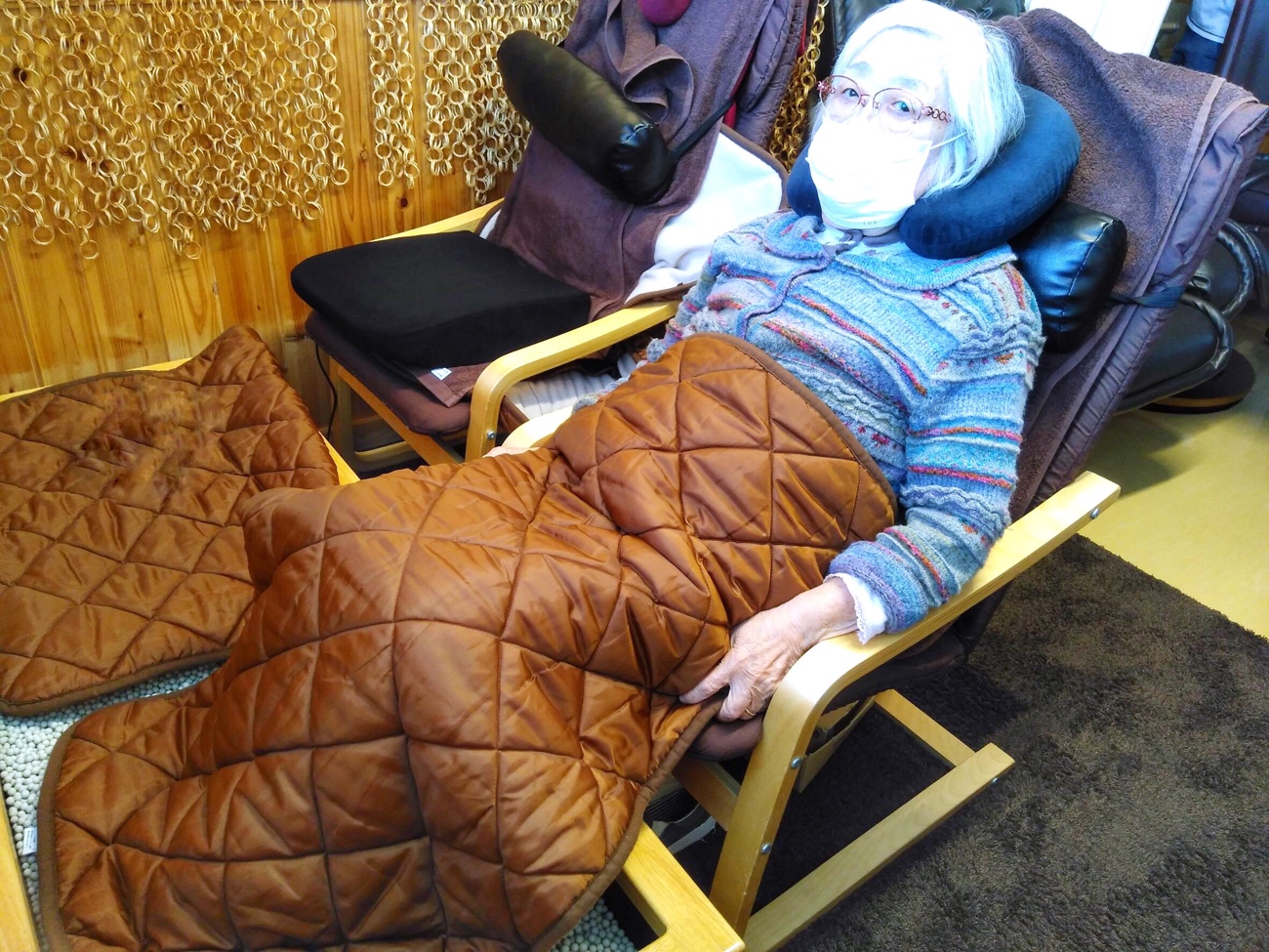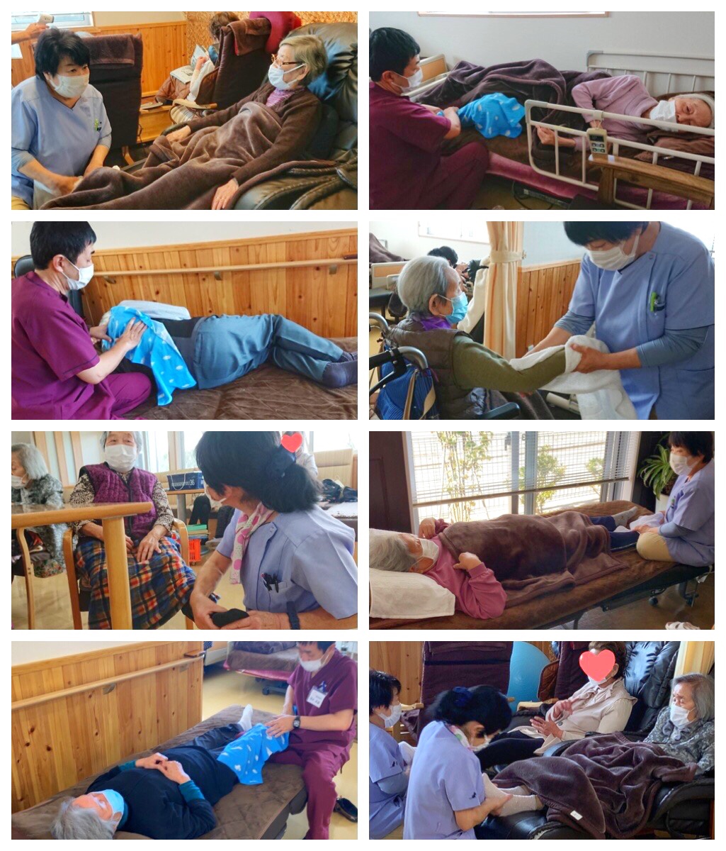 ※機能訓練前に硬直した筋肉をほぐす為、当センターではマッサージをおこなっております。機械では味わえない感触がとても大好評です。『やっぱ人の手だよね』とのお声が上がっております。
