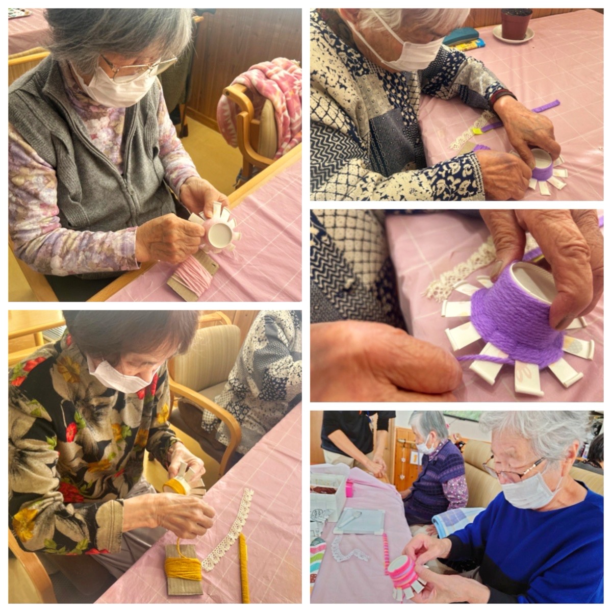 紙コップの底の方からから毛糸を巻き付けていき