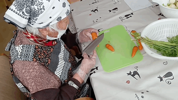 野菜を洗ったり切ったりして