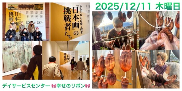 2025 年 12 月 11 日 1件の投稿 202512/11 日本画家展を観に 皆様こんにちは。 甲斐市 双葉 デイサービスセンター幸せのリボンです。 本日もリボンでは お客様をお守りするべく 感染予防を徹底しております。 &nb …READPOST 木曜日の日記 | 外出レク | 全ての日記anamizu