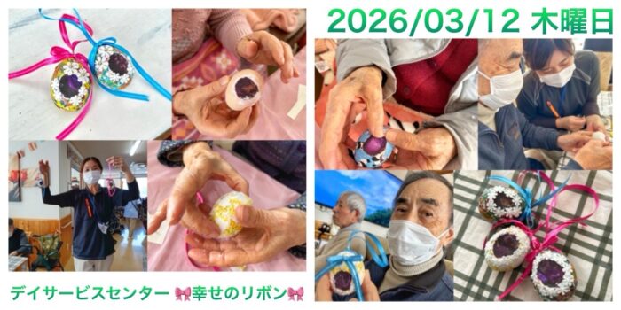 2026 年 3 月 12 日 1件の投稿 202603/12 エッグポマンダー作り 皆様こんにちは。 甲斐市 双葉 デイサービスセンター幸せのリボンです。 本日もリボンでは お客様をお守りするべく 感染予防を徹底しております。 &nb …READPOST 木曜日の日記 | 特別工作・体験 | 全ての日記anamizu