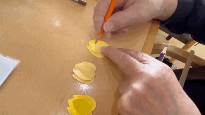 花びらは立体感を出すために色鉛筆で淵を色付けします!