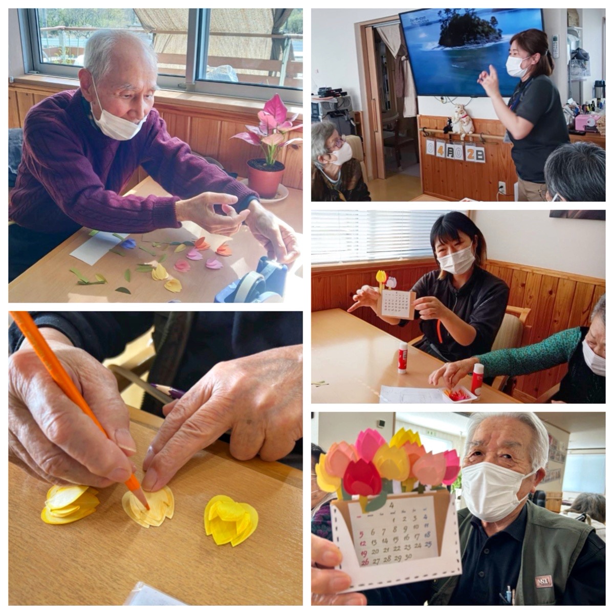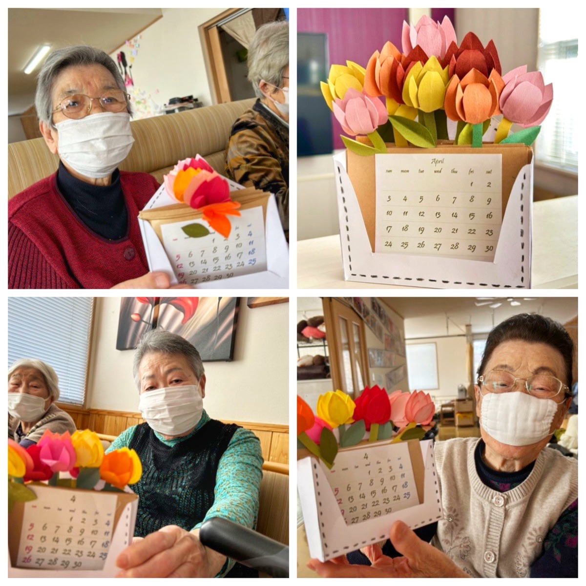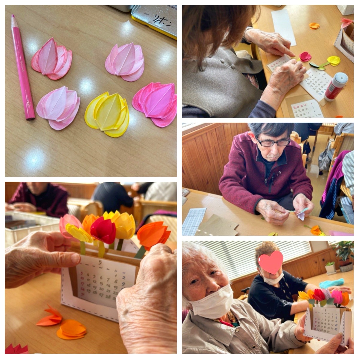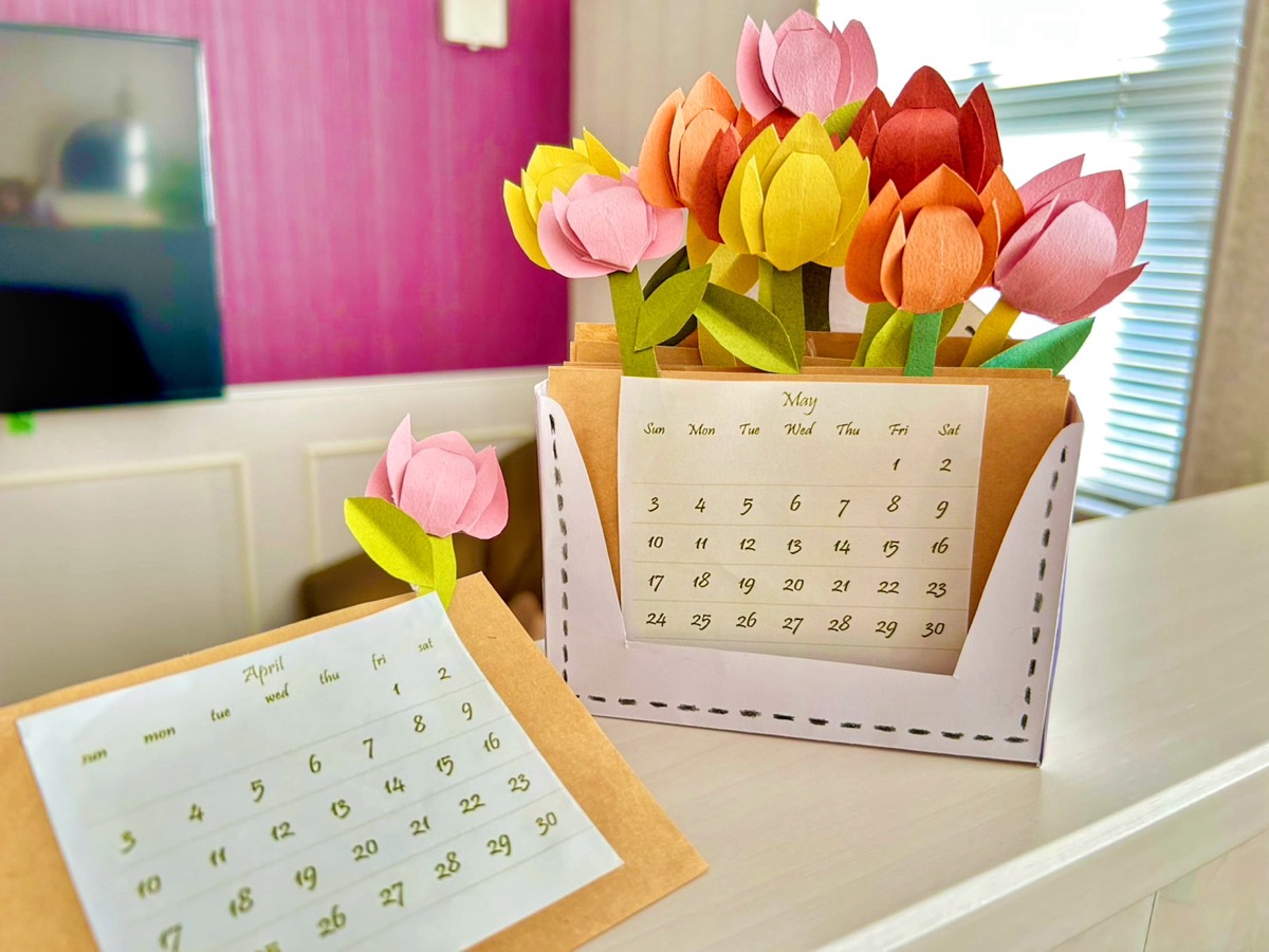 チューリップをカレンダーに1枚ずつ貼り付けていき